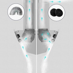 Mode de recyclage : recycler à l'intérieur avec CBCF055-OW (inclus), vous devez installer le filtre à charbon pour le recyclage d’air. Les odeurs peuvent être filtrées et ventilées par le trou supérieur, avec cette fonction, le tuyau d'évacuation n'est pas nécessaire.