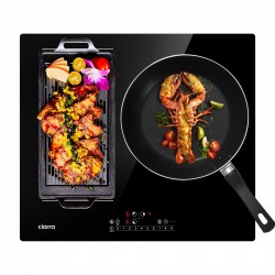 Table induction 3 foyers dont 2 zones à gauche pouvant être combiner pour fonctionner comme une grande zone Flexible 21x40 cm