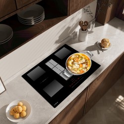 Cuisinez rapidement en toute sérénité avec cette plaque induction LINARIE LNI90DAI1F2Z, grâce à ses 4 zones de cuisson avec 9 niveaux de puissance et d'une fonction Booster pour chaque zone, pour une cuisson rapide et un réglage de température précis. L'aspiration intégrée vous libèrera de l'espace au mur pour vos meubles de cuisine, l'encombrement sous le plan de travail correspond à un tiroir casserolier de seulement 23 cm !