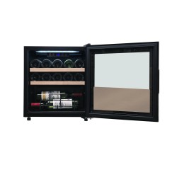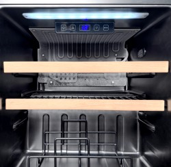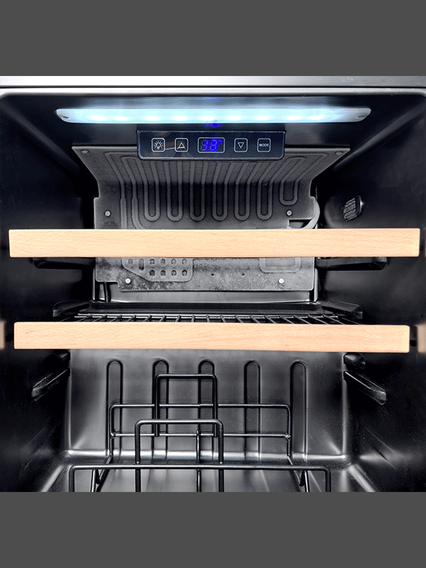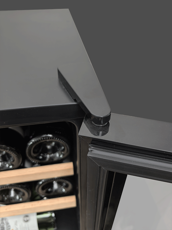 Découvrez l'élégance intemporelle de notre gamme de mini cave à vin AGK14PV. Conçus pour se fondre harmonieusement dans votre cuisine, ces appareils allient esthétique raffinée et technologie de pointe. Une façade en verre noir, d'une élégance sobre, dissimule un écrin dédié à vos crus. Les portes en verre filtrant les UV préservent les arômes délicats de vos vins, les protégeant du vieillissement prématuré causé par la lumière. À l'intérieur, un univers dédié à la dégustation s'ouvre à vous. Les clayettes en fil métallique avec garniture en bois conçues pour absorber les vibrations, offrent à chaque bouteille un berceau sûr et silencieux. L'éclairage intérieur, doux et tamisé, met en valeur vos crus et crée une ambiance chaleureuse.